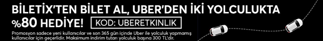 Biletix’ten bilet alan yeni Uber kullanıcıları, Uber uygulamasında yapacakları iki yolculukta %80 indirim kazanır.